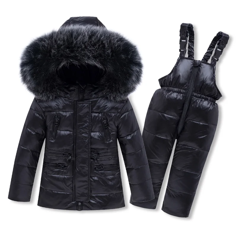2019 Winter Baby Boy Girl clothing Set warm Down Jacket coat Snowsuit Children parka real fur Kids