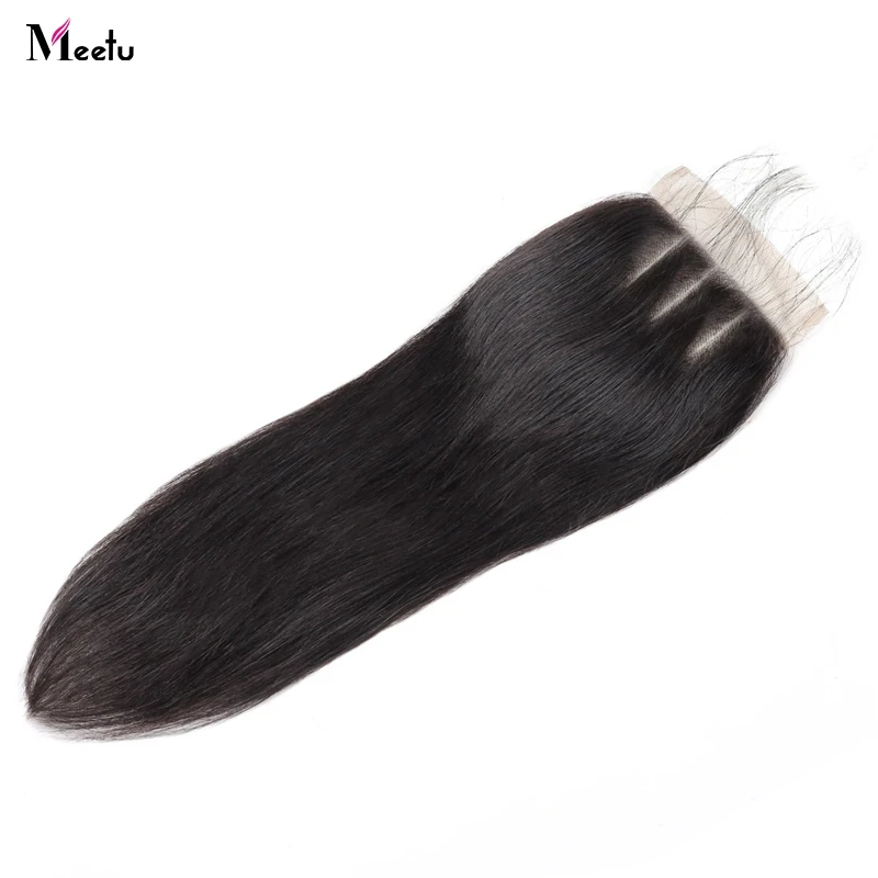 Meetu Malaysian Straight Hair Lace Closure With Baby Hair Free Middle Three Part Non Remy Human Hai