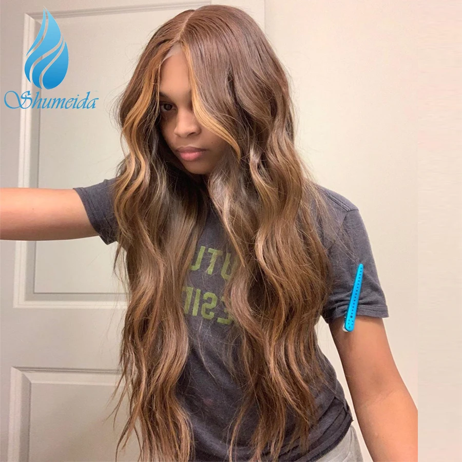 SHD 13*6 Ombre Honey Blonde Lace Front Wigs Baby Hair Brazilian Remy Hair Loose Wave Wigs for Women